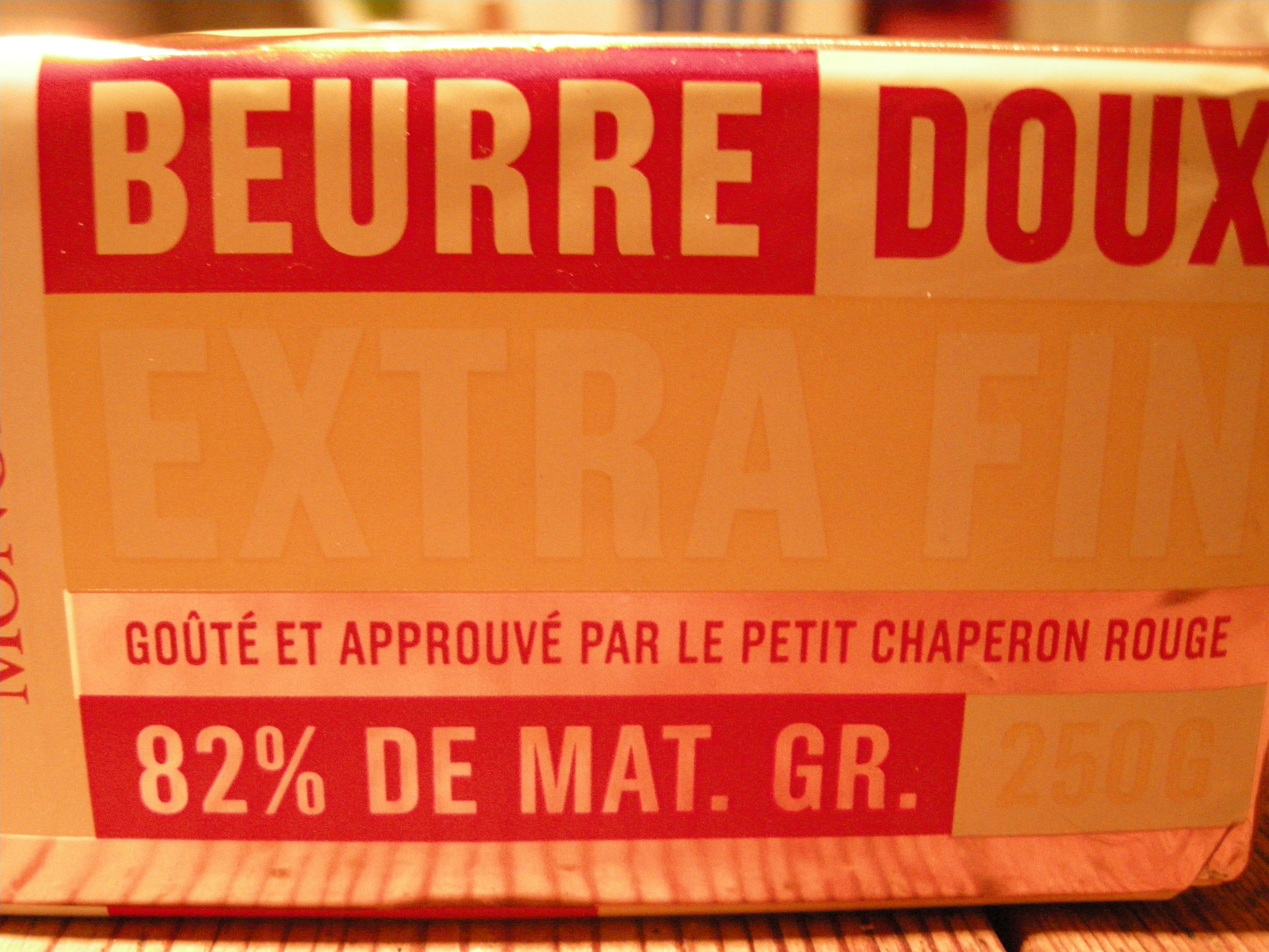 Ma préférée de la session d’hier (les nouveaux packaging arrivent au fur et à mesure), la plaque de beurre « recommandée par le petit chaperon rouge ».