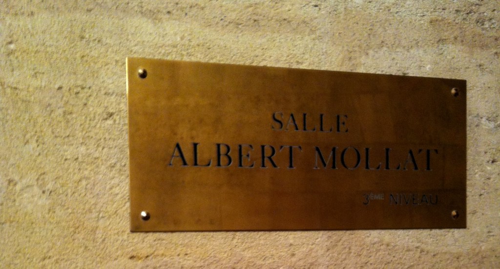 Le Salon Mollat, au 3ème étage au dessus de la librairie immense, est un lieu élégant tout en « ors » et velours rouge, réputé pour ces rangs de dames âgées qui ne ratent pas une seule rencontre littéraire. (la dernière fois que j’étais venue, c’était James Ellroy l’auteur invité, et il a commencé en hurlant à la mort au micro comme un chien enragé)