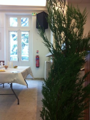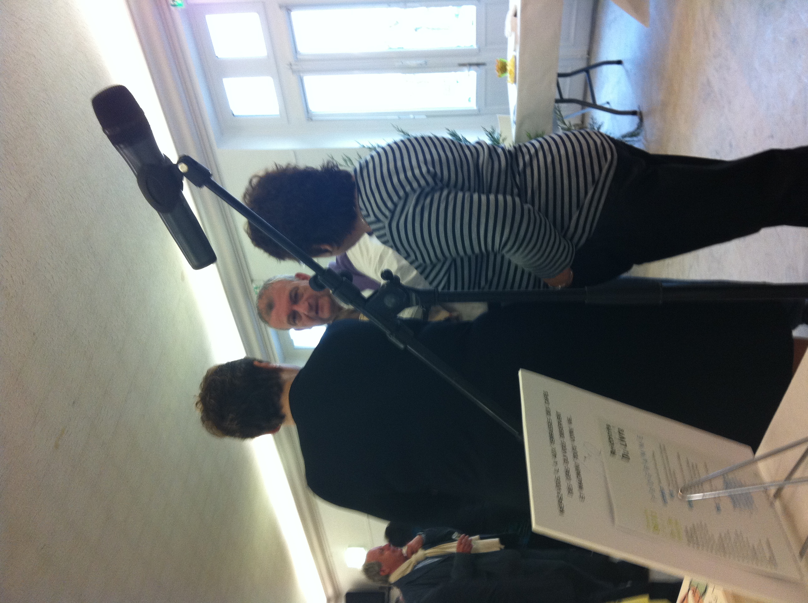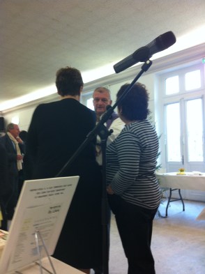 Il est bientôt midi, Madame le Maire d’une main molle me salue, elle tient un bébé dans ses bras, suivi d’un mari qui tient le même bébé. Elle va faire son discours (d’où le micro à côté de moi) : je pars acheter des cigarettes.