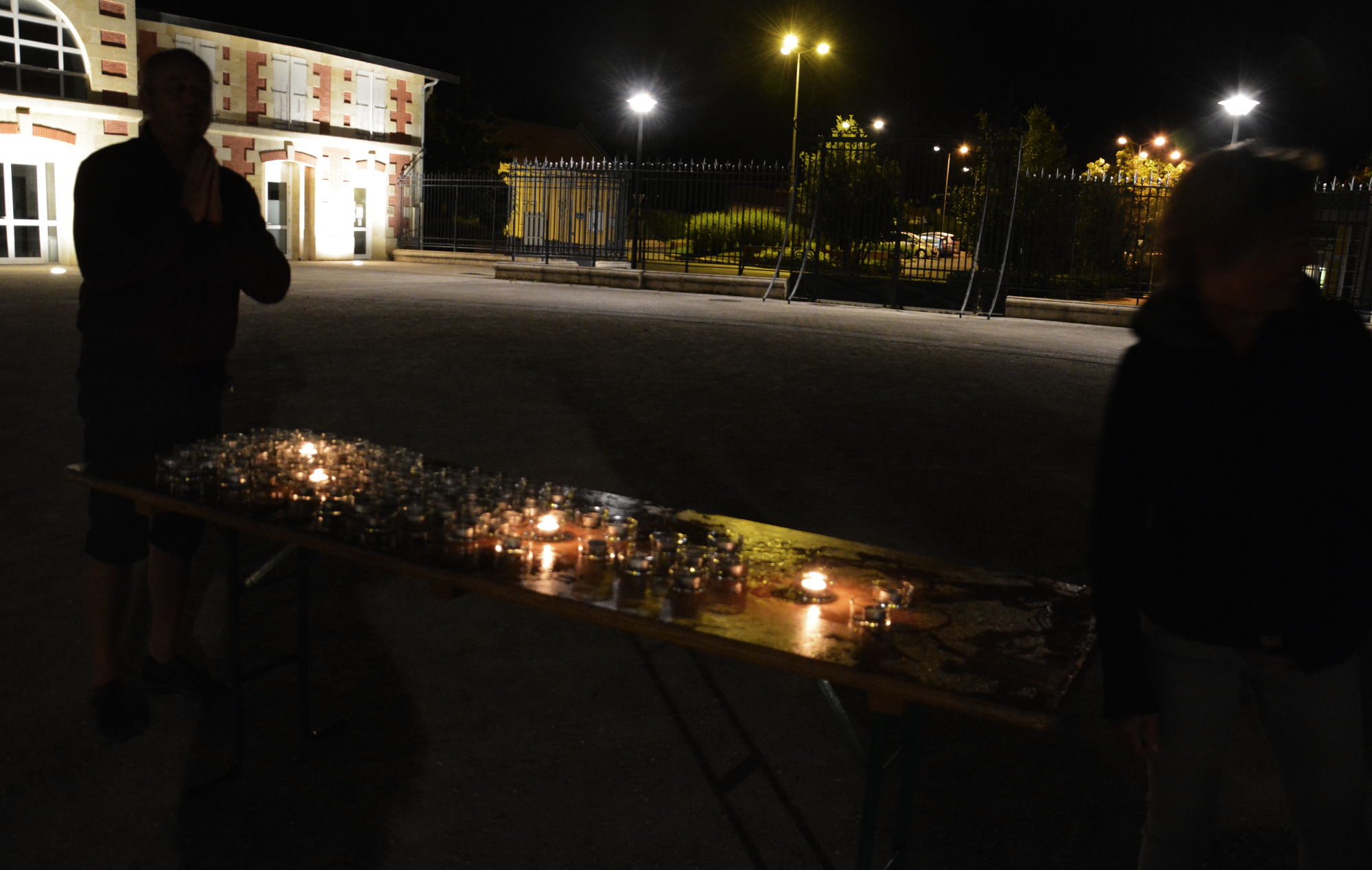 Pour l’instant il fait noir. Des petites bougies éclairent le chemin et le cercle organisé par des bancs de bois.