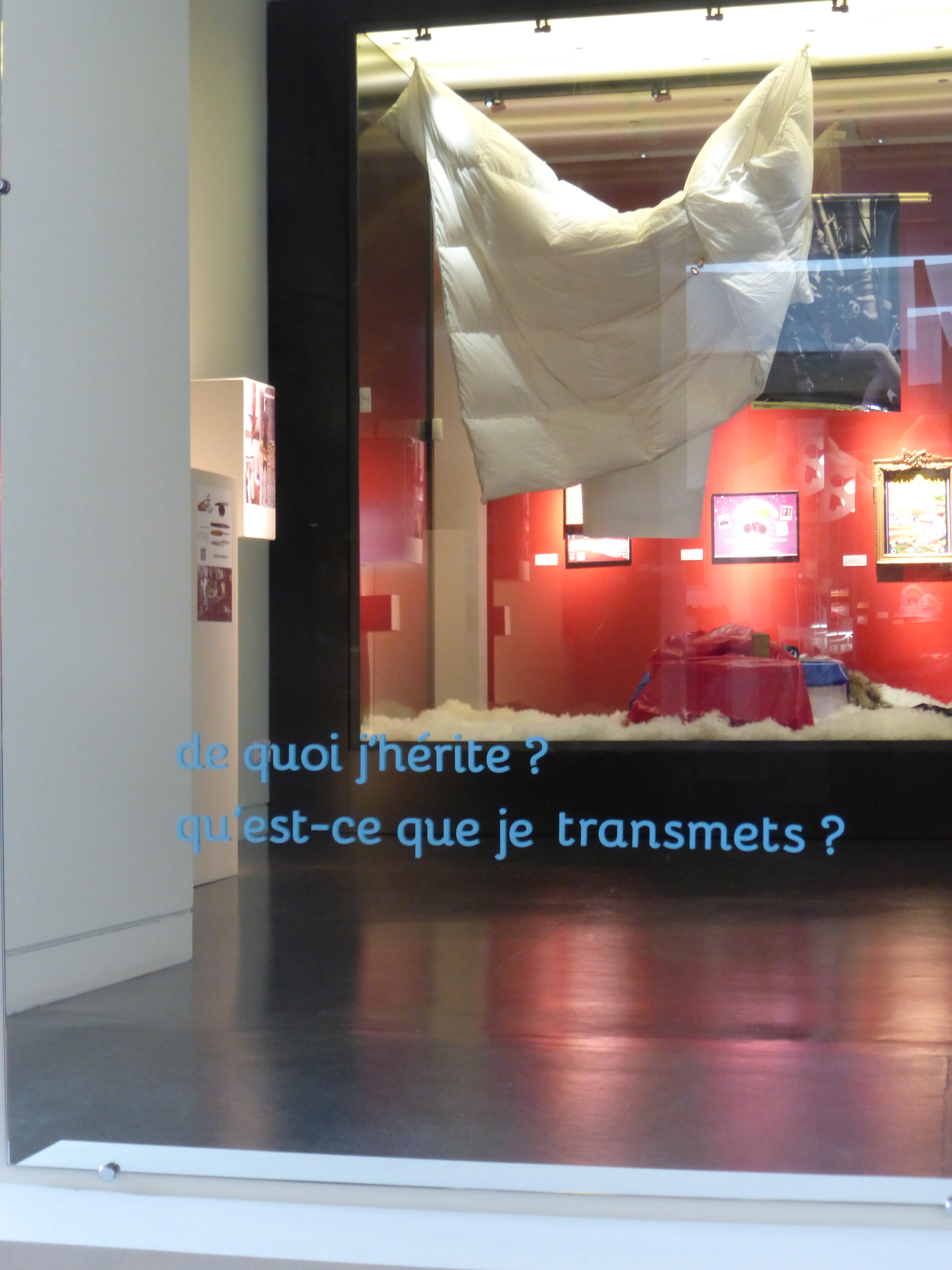 L’endroit ne peut pas rivaliser avec le musée du Quai Branly, c’est un fait. Vous ferez rapidement le tour et serez peut-être déçu par une scénographie des plus basiques. Ça n’a pas tellement d’importance, quelquefois les choses se passent (au sens de transmission) autrement. Ce musée est un lieu qui accompagne des recherches, et les intéressants textes des cartels m’ont davantage appris que les vitrines (même si j’y ai vu des curiosités…). Cette notion de « patrimoine immatériel » rassemble principalement ce que certains d’entre nous – se pensant avertis – considèrent comme… du folklore : l’artisanat, le sport, la cuisine, les fêtes populaires, les traditions. Par exemple, les rites qui rythment une année en sont, chacun avec ses objets symboliques : du chapeau de Catherinette à la collection de fèves de la Fête des rois. (À l’origine, la fève – égyptienne – représentait le souffle des morts en attente de réincarnation. Maintenant qu’on trouve dans les galettes des fèves Homer Simpson ou Bob l’éponge je ne sais pas trop si l’esprit des morts s’y retrouve, mais quelque chose du rituel perdure…)