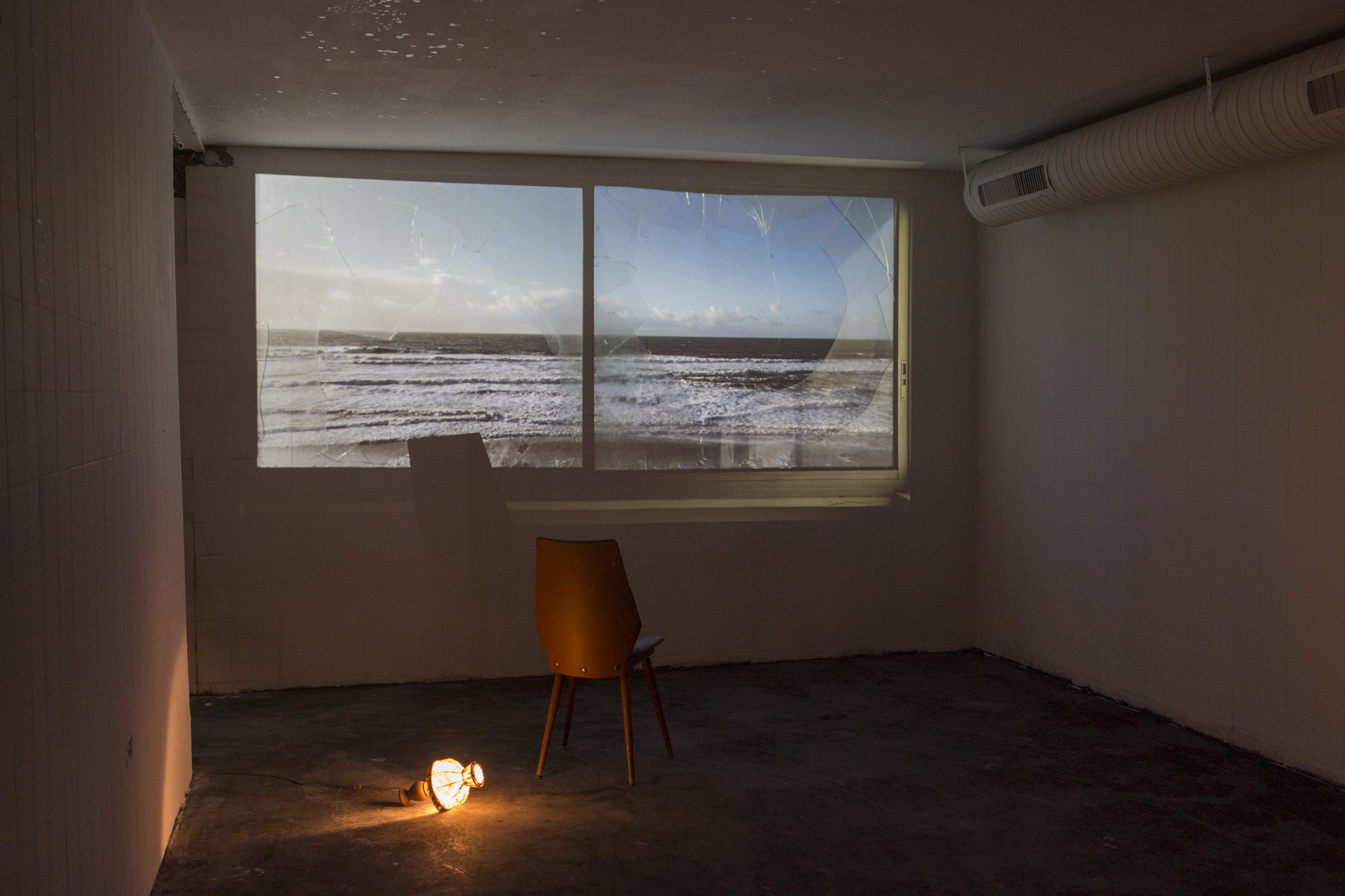 Installation vidéo et sonore ≈ avec Olivier Crouzel ≈ Reproduction d’un appartement du Signal avec vue sur l’océan atlantique ≈ Diffusion audio du texte « 46 fois l’été » lu par Sophie Poirier ≈