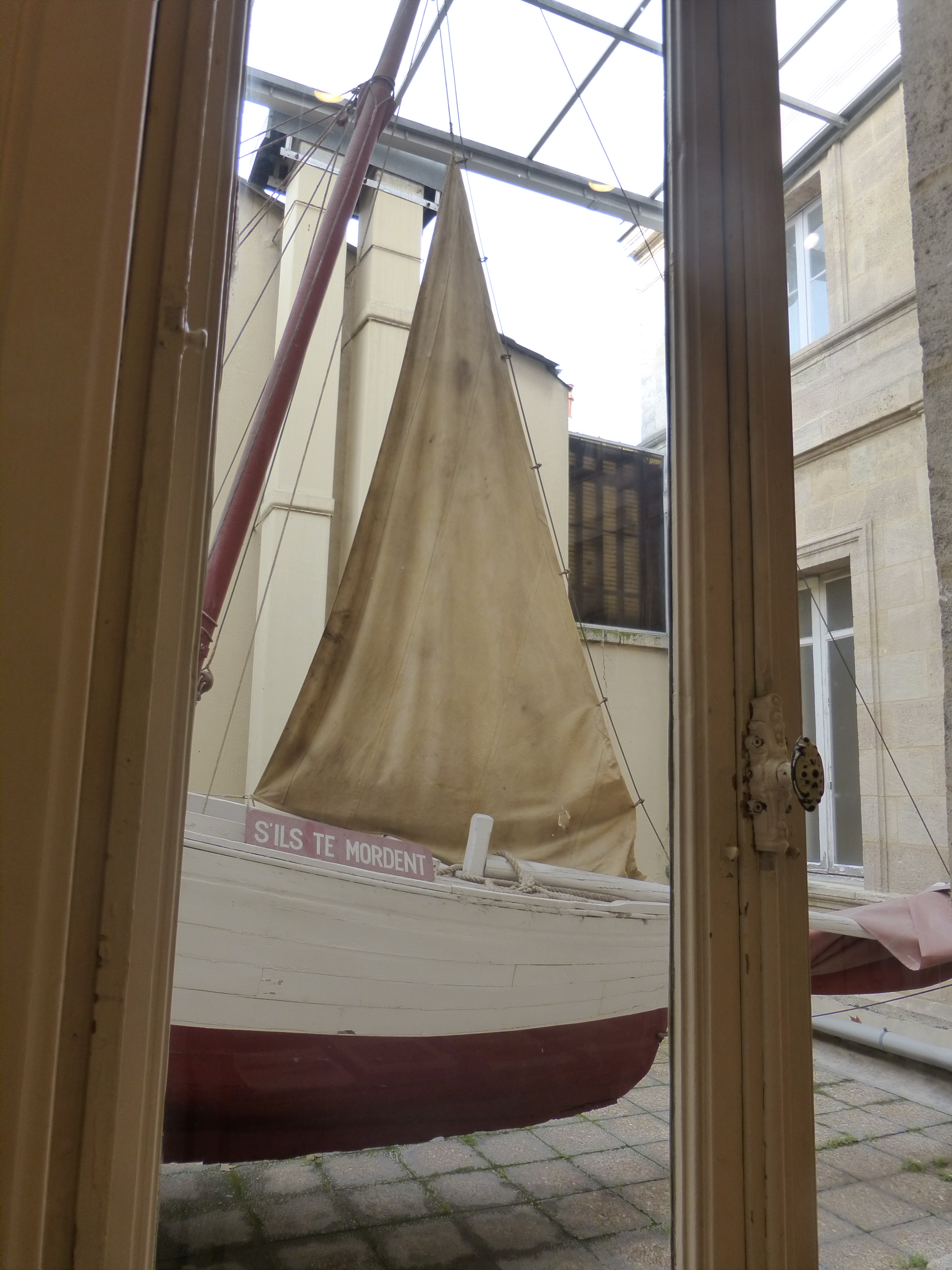 J’avais oublié… Ce voilier, sous la verrière du toit… La surprise délicieuse, à cet étage baigné de lumière, de découvrir un bateau. Le S’ils te mordent permit des traversées clandestines et dangereuses pour ceux qui voulaient la liberté à tout prix.