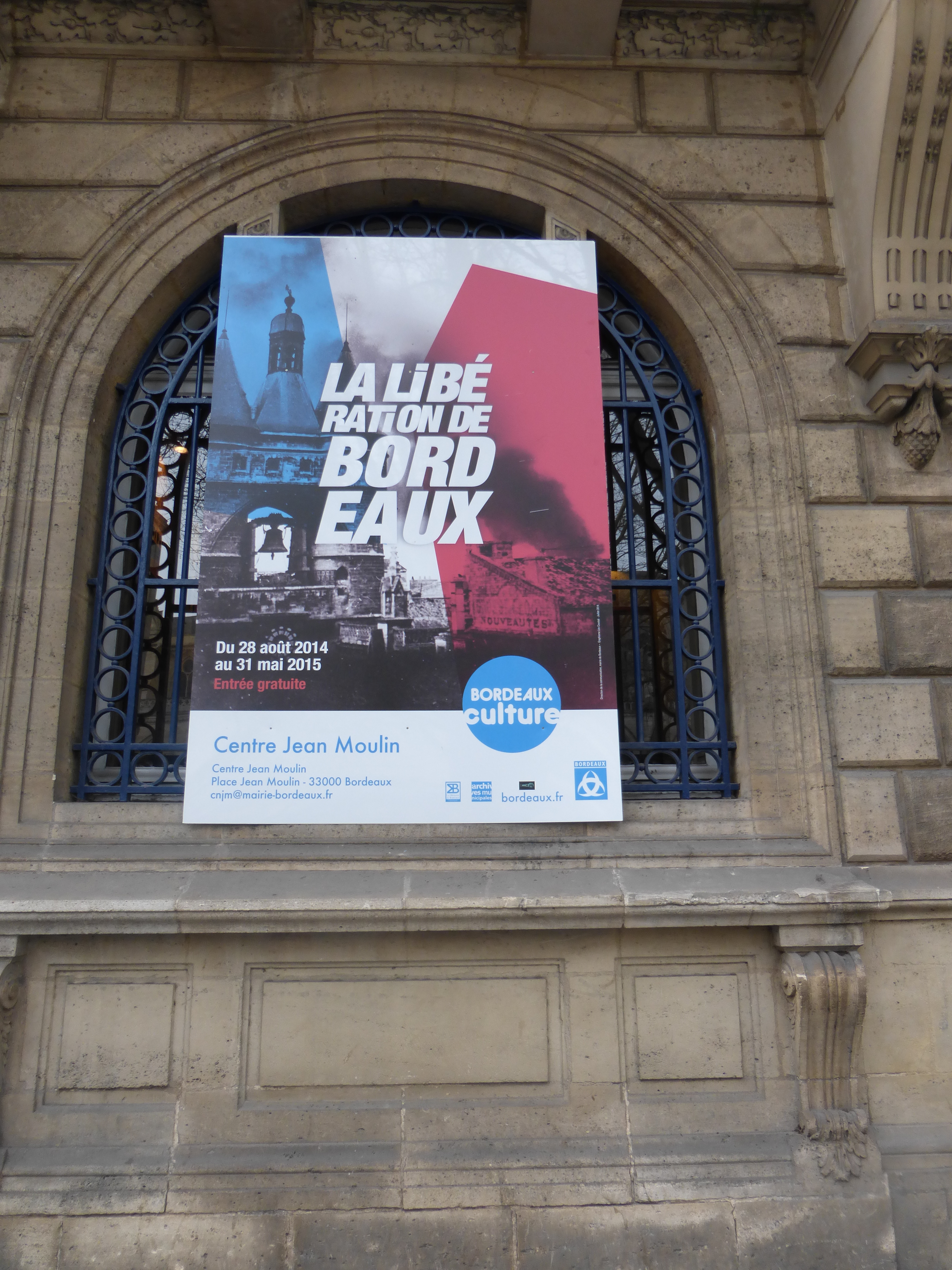 Rien qui incite vraiment à visiter au Centre national Jean-Moulin l’exposition sur Bordeaux libéré ; rien qui éveille votre curiosité, que l’on soit petit ou grand, que l’on soit érudit ou peu savant. Ce travail de communication est raté, désolée, je ne peux pas le dire autrement, c’est une des affiches les plus moches de l’année.