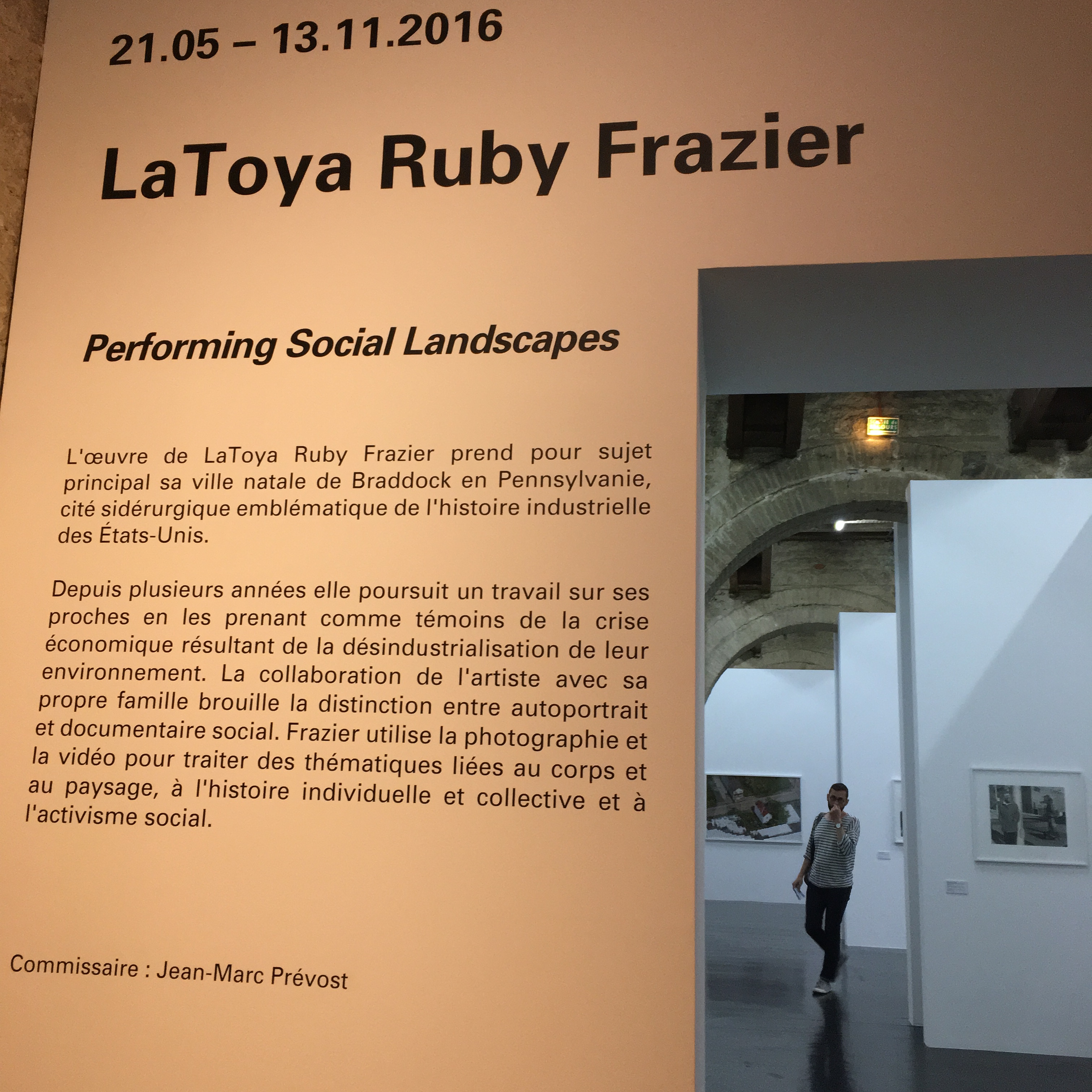 Deux vidéos pour les contemplatifs, un film avec des séquences à bord d’un bateau-monstre de croisière, et un autre à l’intérieur du Mémorial pour l’esclavage de Nantes, et c’était très beau, j’étais la seule à rester à regarder jusqu’au bout, des touristes avec des tenues de touristes entraient et sortaient, j’ai pensé – mauvaise langue – qu’ils avaient dû imaginer le CAPC comme leur visite à la Cité du vin, et ils étaient déçus, ils ne comprenaient rien du tout alors que le vin on comprend immédiatement, et après je suis allée voir les photos de LaToya Ruby Frazier qui font des claques dans la gueule, et je voulais continuer et les gardiens m’ont sauté dessus parce qu’à 18h on ferme et j’ai dit à la dame de l’accueil qu’elle aurait pû me prévenir, que 2 heures ça suffisait pas pour tout voir, il me restait encore Judy Chicago et Constellation.s, elle m’a dit Si, Si on a évalué en moyenne les gens mettent 2 heures et j’ai répondu Oui, les gens qui ne regardent rien qui ne lisent rien qui n’écoutent rien oui c’est sûr les touristes qui visitent les musées comme les cités du vin oui ils mettent deux heures mais sinon c’est impossible.