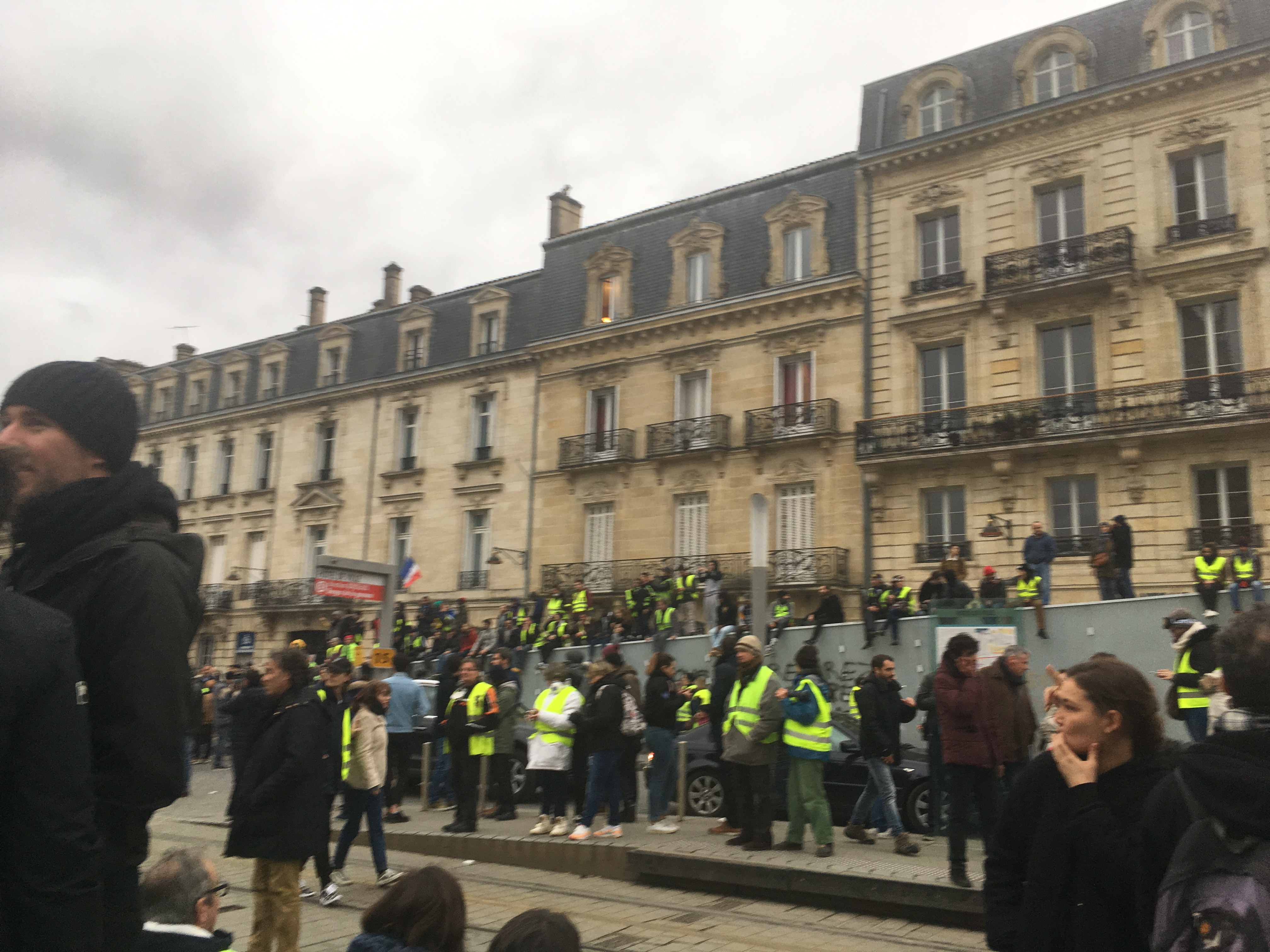 Il n’y a pas de tracé prédéfini à la manifestation, elle n’est pas autorisée. Et sans guide et sans trajet prévu à l’avance, nous faisons des détours, sortons de temps en temps des grands artères, déboulant dans des petites rues, oubliant les traditions de la manifestation bordelaise, passons même deux fois au même endroit ! Pour un syndicaliste aguerri, ça doit être à la fois insoutenable et excitant. Souvent, c’est l’impression d’un grand bordel.
