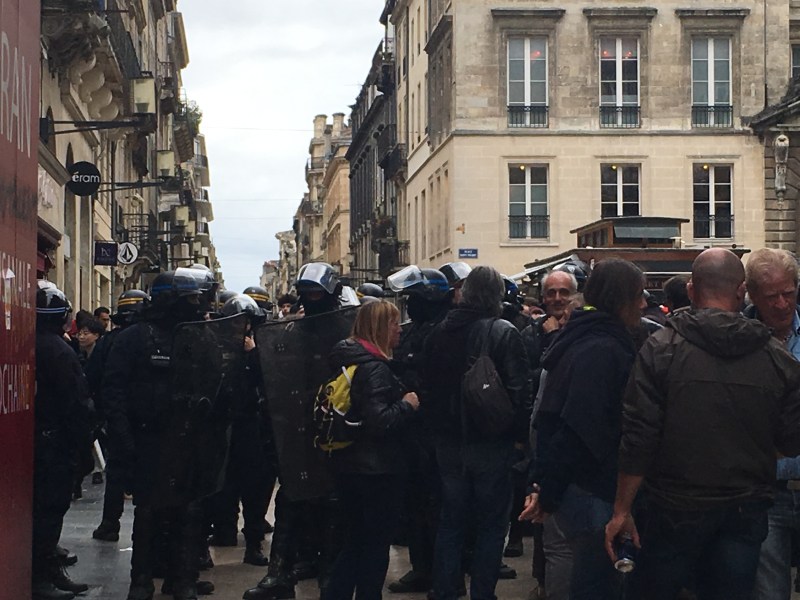 Tous les samedis, je marche pour dénoncer un système ultra-libéral qui détruit les hommes et la planète, et je me fais pointer du fusil par les baqueux (de la BAC), à chaque rue, ils sont là, fiers cow-boys ultra-équipés, et je vous assure, passer devant eux est une épreuve terrible, on a peur, pour de vrai, de manifester, comme si nous étions de dangereux terroristes, des ennemis, il faudrait que vous voyez ça vraiment…