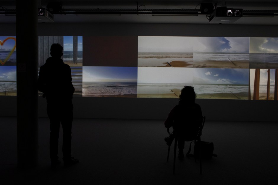 Le mouvement des vagues derrière chaque fenêtre, à la fois le même et aléatoire. Parfois des gens ont la place de marcher sur la plage. On pense que c’est le même paysage, alors que ce n’est ni le même ciel ni le même rythme d’océan, et les nuages se trouent d’autres façons, les vagues ont l’air d’une seule ligne mais d’où viennent les diagonales ?