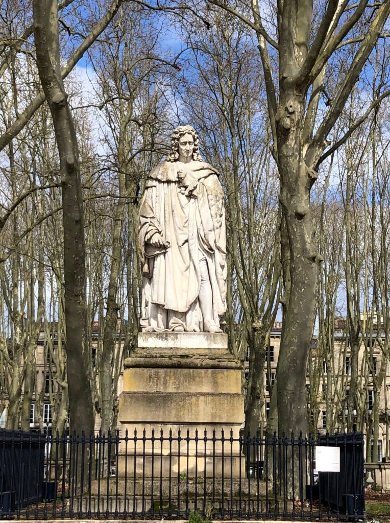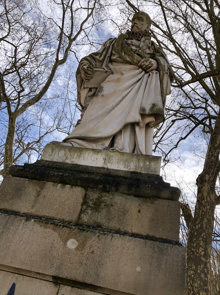 Ces deux « héros », Modeste Testas et Toussaint Louverture, sont des statues l’une et l’autre, de petite taille, à taille humaine sans doute. Pourquoi n’ont-ils pas, elle surtout, cette grandeur ou ce pied d’estale sur lequel on dresse les sujets d’importance ? Et je repense aux statues imposantes de Montaigne et Montesqueieu installés autour de la place des Quinconces. Bon, il me suffit de les voir, coincés entre un stand de tir et un manège de train fantôme quand s’installe la Foire aux plaisirs, ou chaque jour engrillagés et moisis, pour me dire que finalement leur sort n’est pas si enviable. Finalement, il vaut mieux être petite au bord de la Garonne…